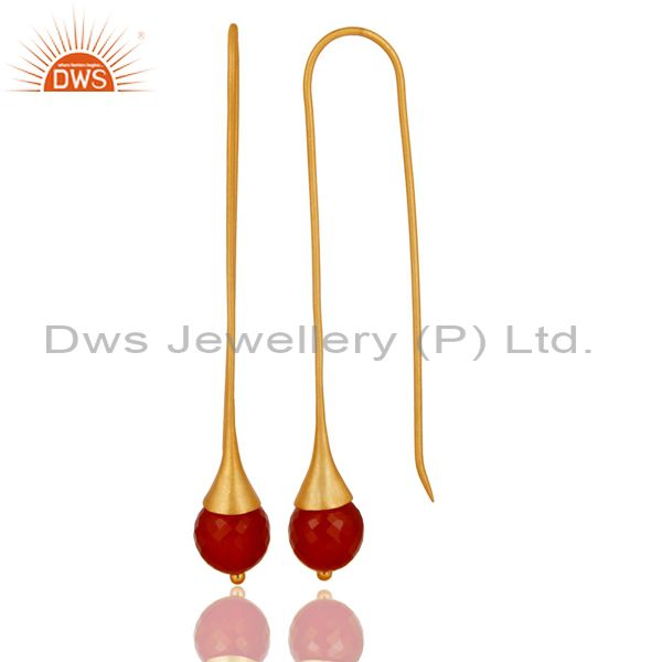 22K Gold Plated 925 Sterling Silver Red Onyx Faceted Dangle Earrings
