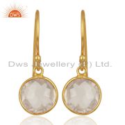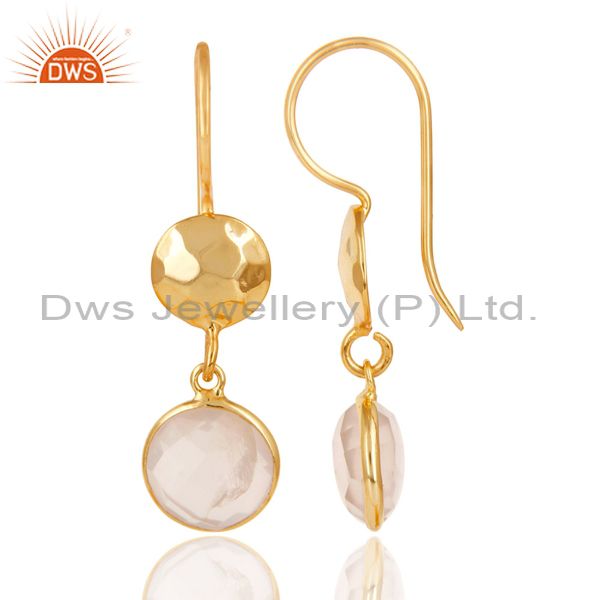 22K Gold Plated 925 Sterling Silver Rose Quartz Hammered Disc Dangle Earrings