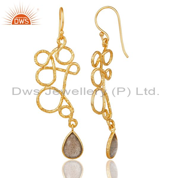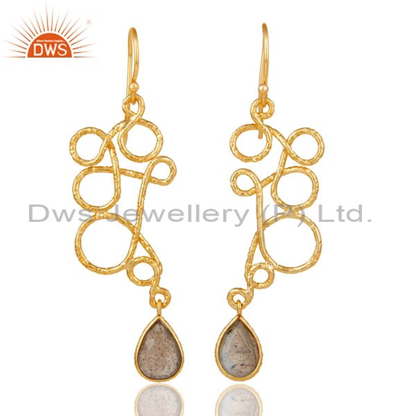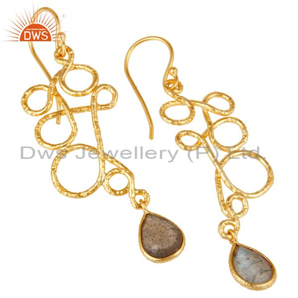 22K Gold Plated 925 Sterling Silver Zig Zag Style Labradorite Drops Earrings