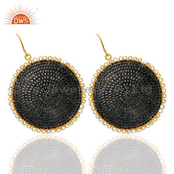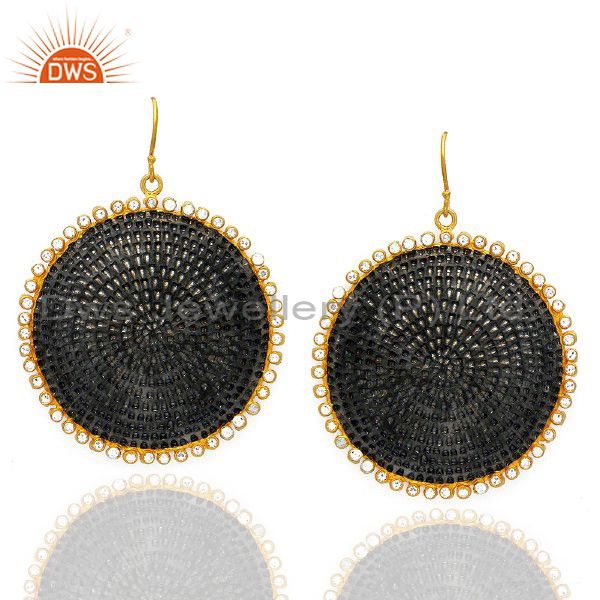 22K Gold Plated And Oxidized Brass Hammered Disc Dangle Earrings With Cz