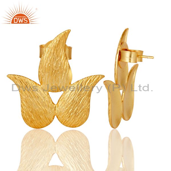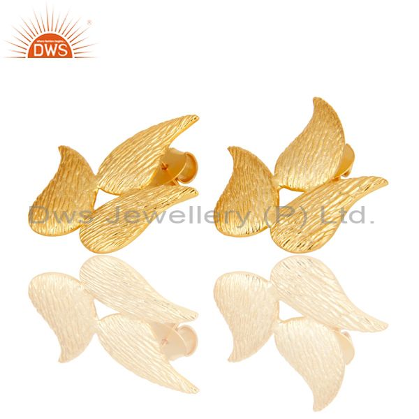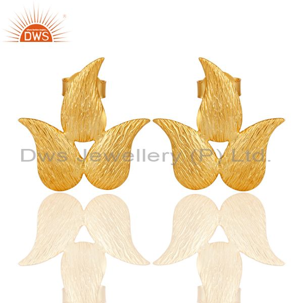 22k Gold Plated New Fashion Prong Set Brass Studs Earrings Jewellery
