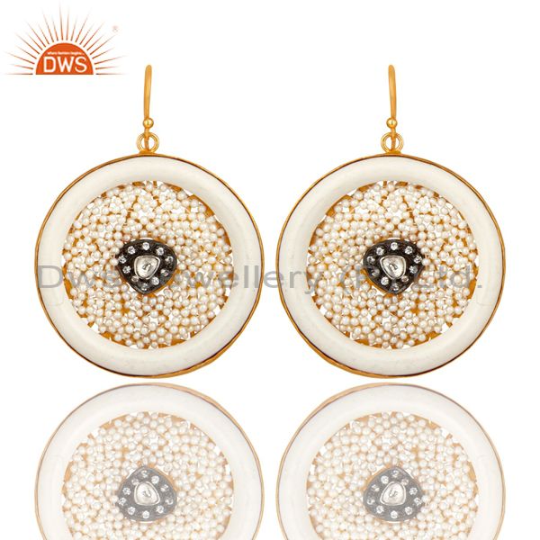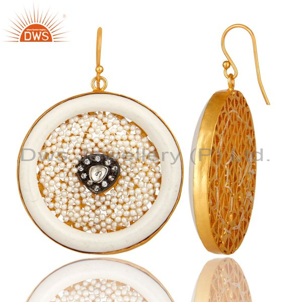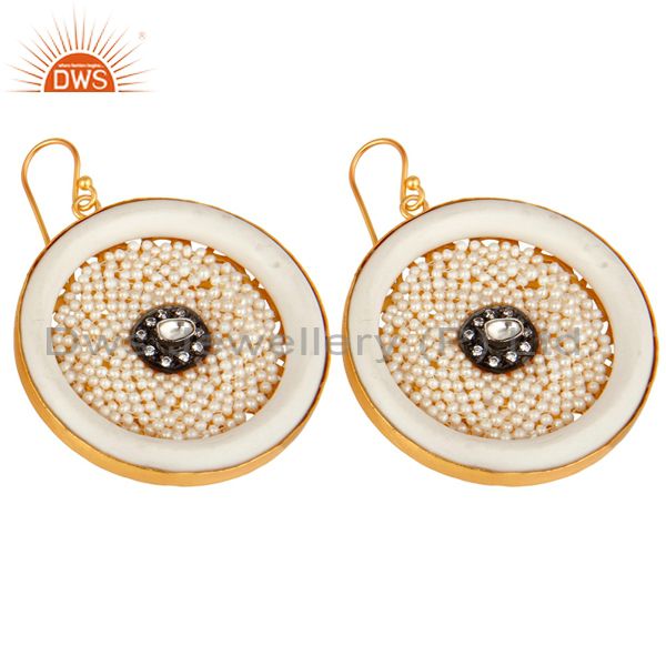 22K Gold Plated Sterling Silver Bakelite And Pearl Circle Dangle Earrings