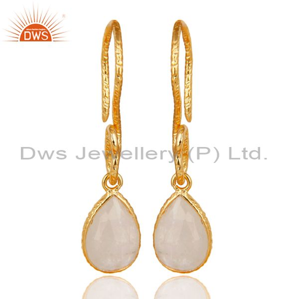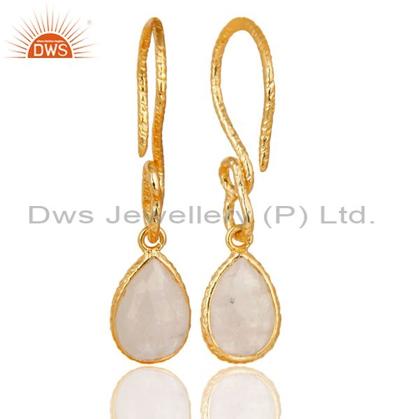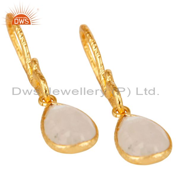 22K Gold Plated Sterling Silver Bezel Set Rainbow Moonstone Dangle Earrings