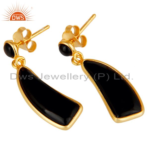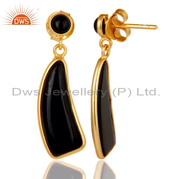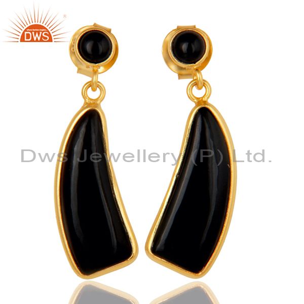 22K Gold Plated Sterling Silver Black Onyx Gemstone Drops Earrings Jewellery