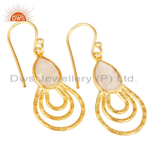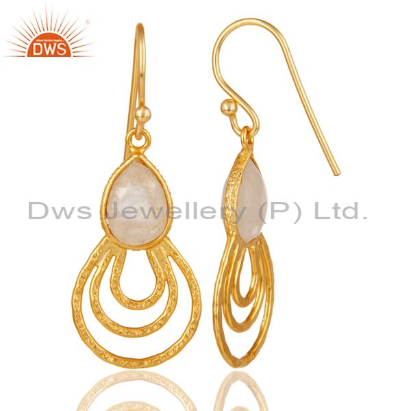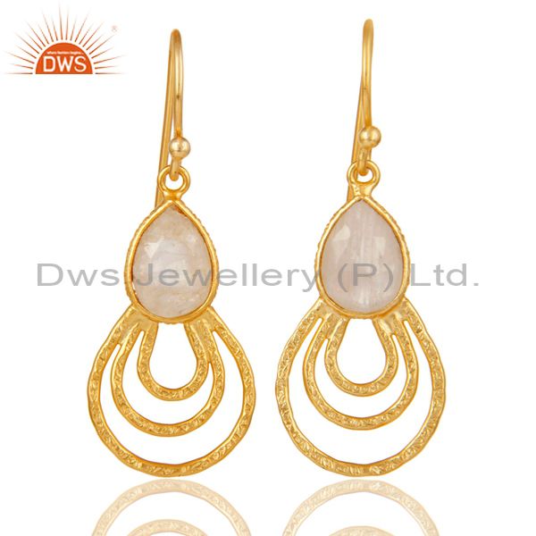 22K Gold Plated Sterling Silver Classic Bezel Set Moonstone Drops Earrings