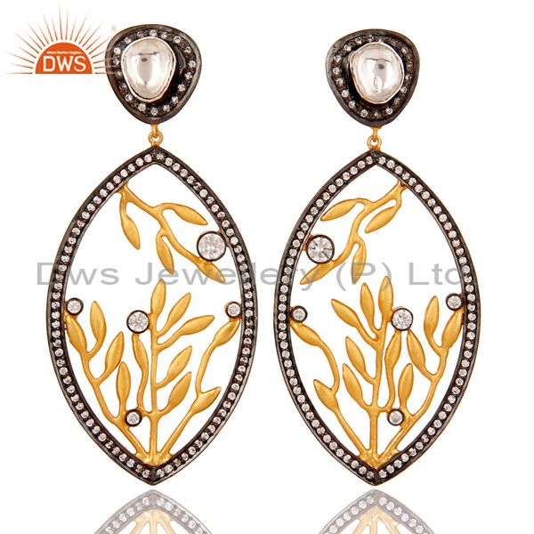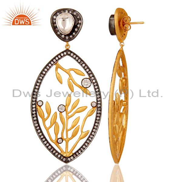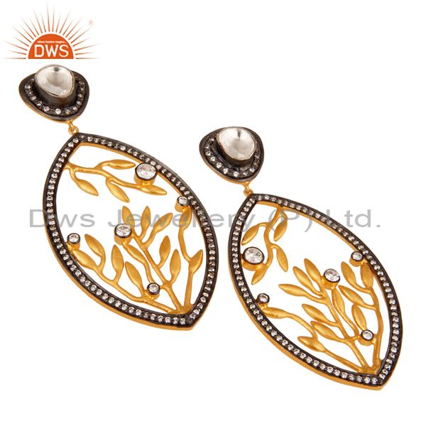 22K Gold Plated Sterling Silver Crystal Quartz And Cz Floral Dangle Earrings