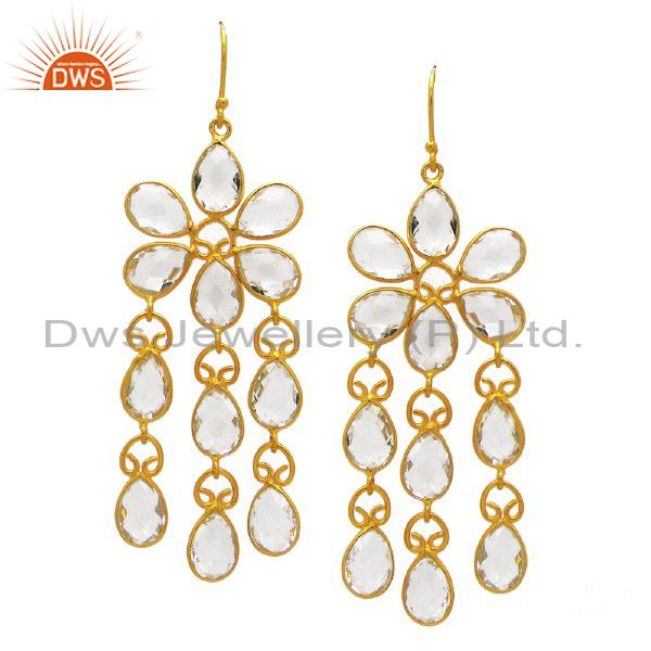 22K Gold Plated Sterling Silver Crystal Quartz Designer Chandelier Earrings