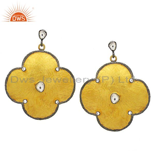 22K Gold Plated Sterling Silver Cz Crystal Polki Designer Dangle Earrings