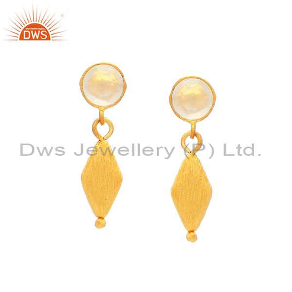 22K Gold Plated Sterling Silver Matte Finish White Chalcedony Drop Earrings