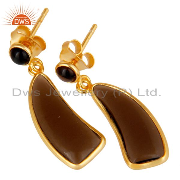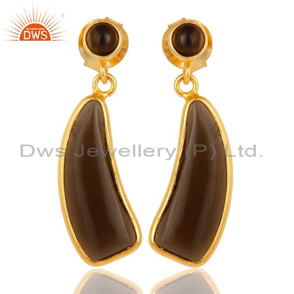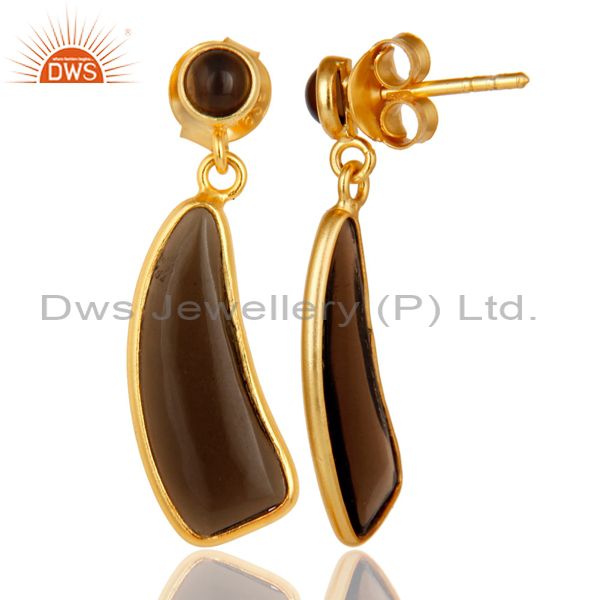 22K Gold Plated Sterling Silver Smokey Topaz Gemstone Drops Earrings Jewellery