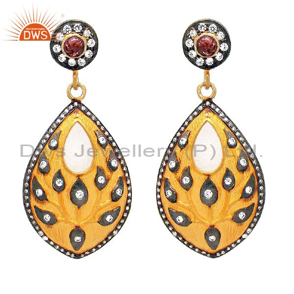 22K Gold Plated Sterling Silver Tourmaline And Cz Leaf Designer Dangle Earrings