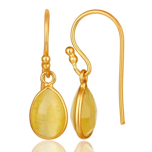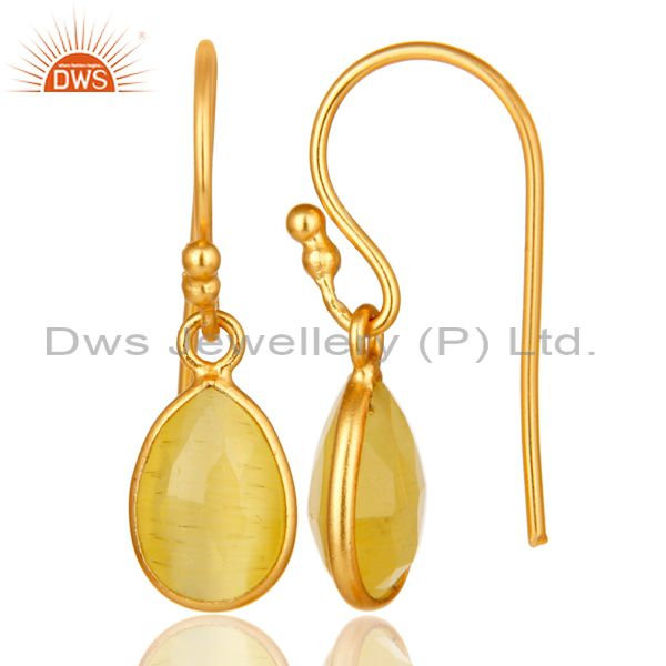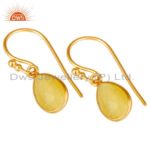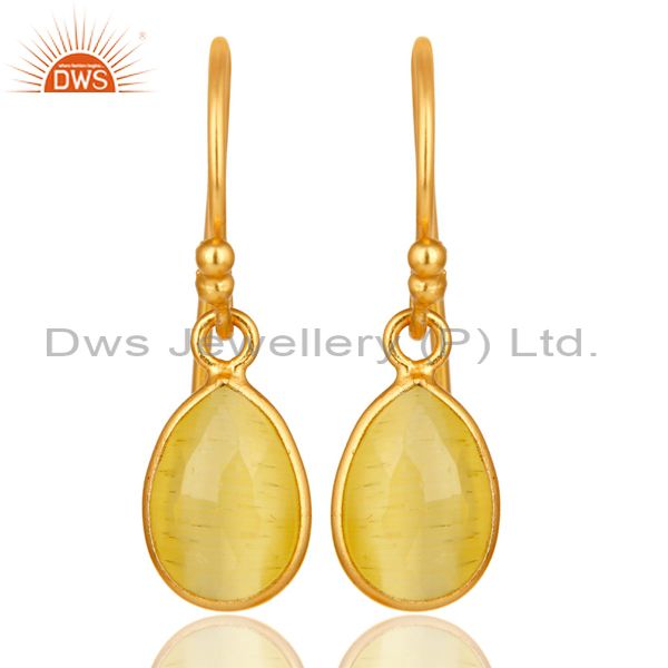 22K Gold Plated Sterling Silver Yellow Moonstone Bezel Set Teardrop Earrings