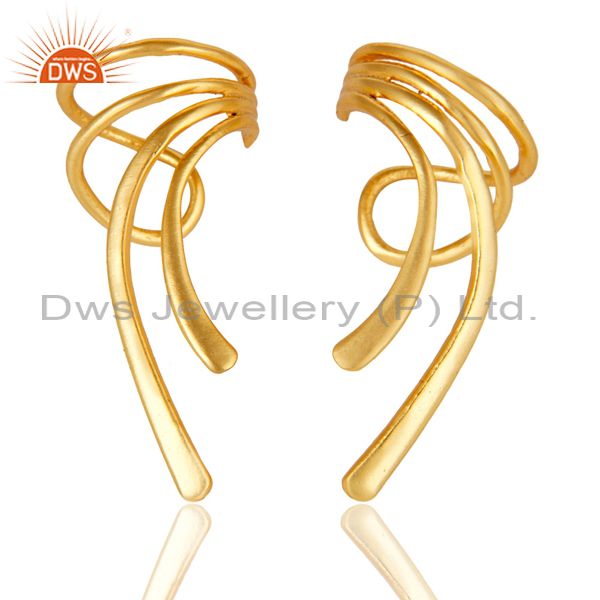 22K Gold Plated Traditional Handmade Art Design Brass Earrings Jewellery