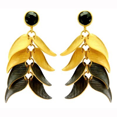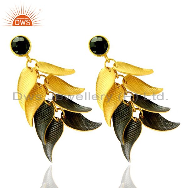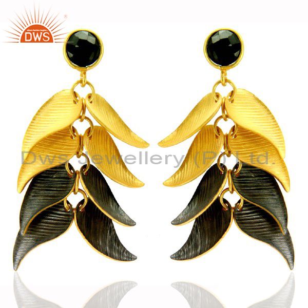 22K Matte Yellow Gold Plated Brass Black Onyx Designer Chandelier Earrings
