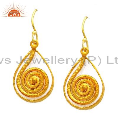 22K Matte Yellow Gold Plated Sterling Silver Spiral Designer Dangle Earrings