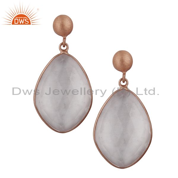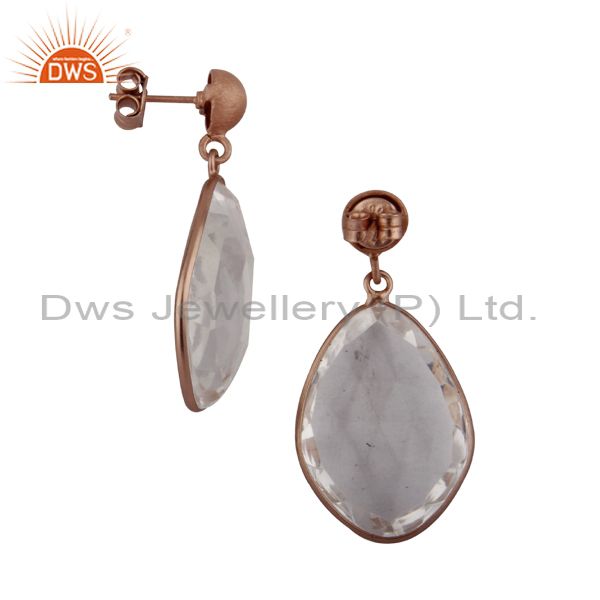 22K Rose Gold Plated Sterling Silver Crystal Quartz Bezel Set Dangle Earrings