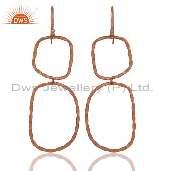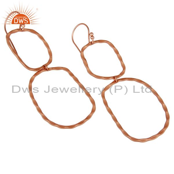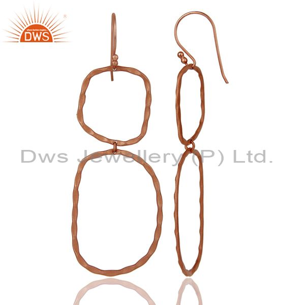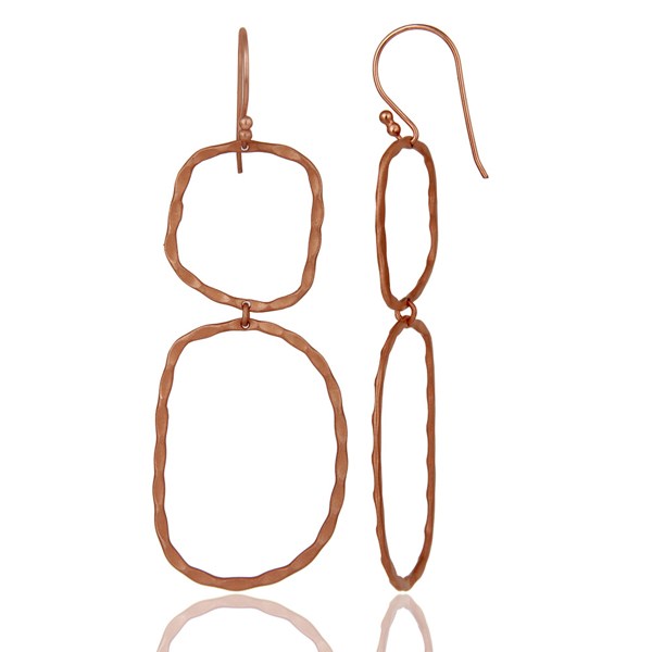 22K Rose Gold Plated Sterling Silver Hammered Open Double Circle Dangle Earrings
