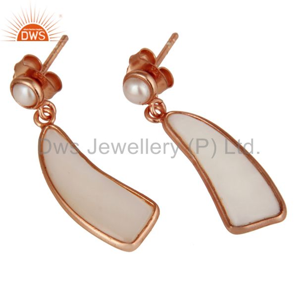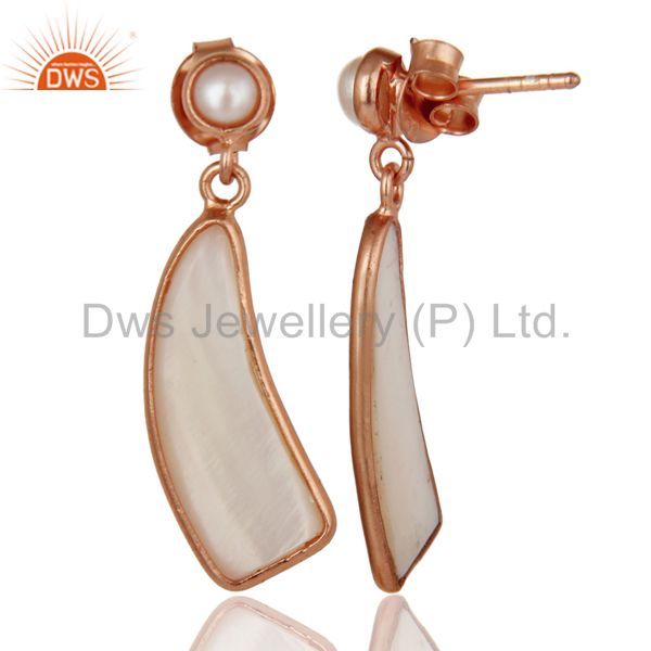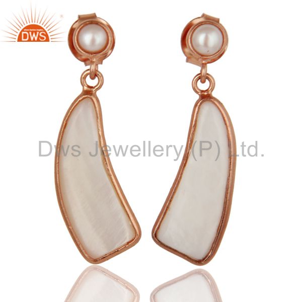22K Rose Gold Plated Sterling Silver Mother Of Pearl & Pearl Drops Earrings