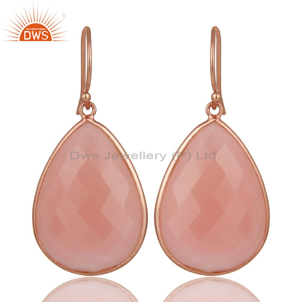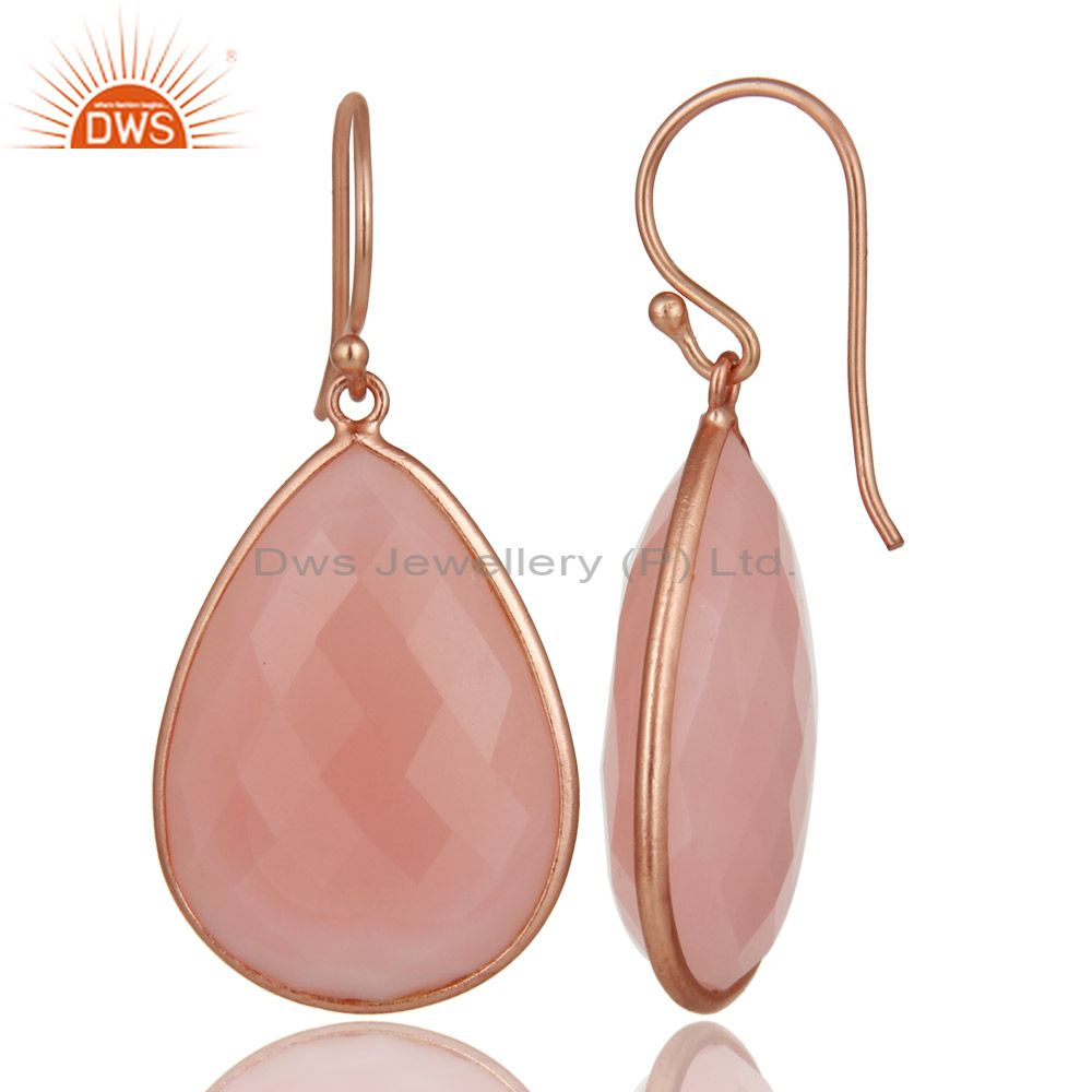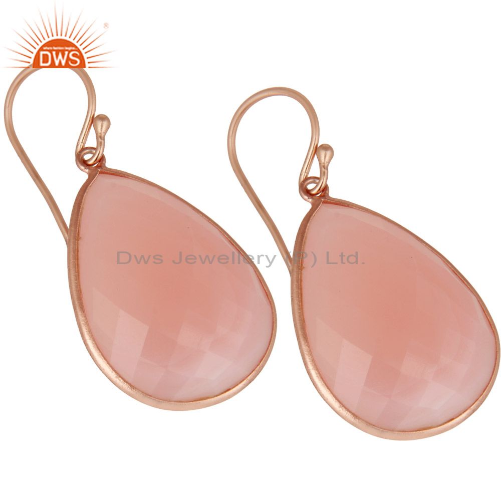 22K Rose Gold Plated Sterling Silver Rose Chalcedony Bezel Set Drop Earrings