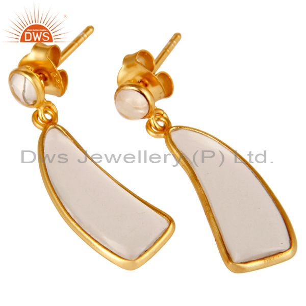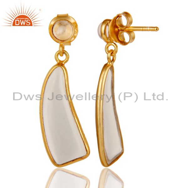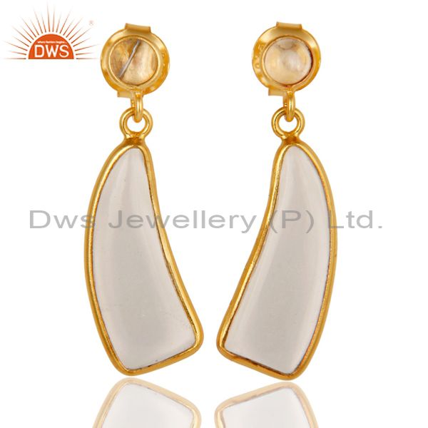 22K Yellow Gold Plated 925 Sterling Silver Handmade Crystal Quartz Drop Earrings