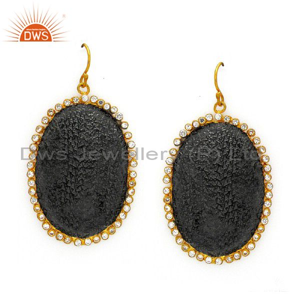 22K Yellow Gold Plated And Oxidized Brass Cubic Zirconia Dangle Earrings