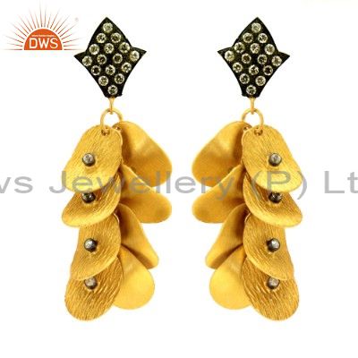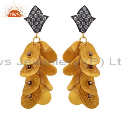 22K Yellow Gold Plated Brass Cubic Zirconia Designer Chandelier Earrings