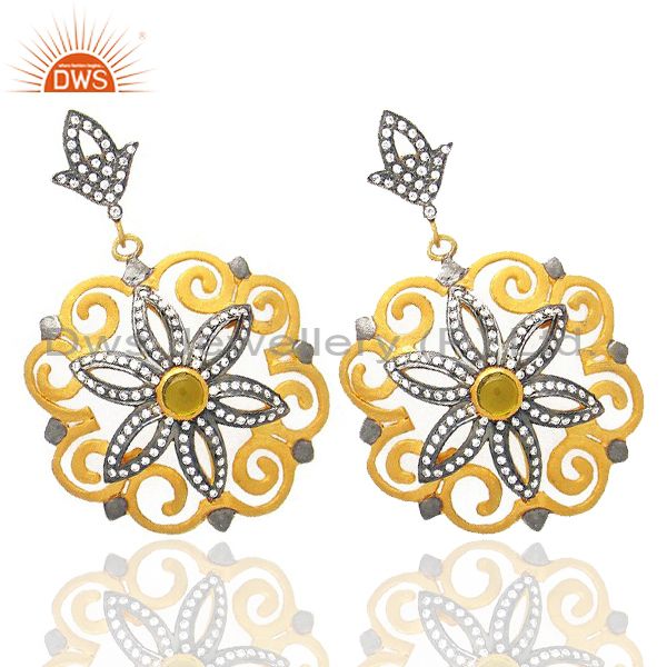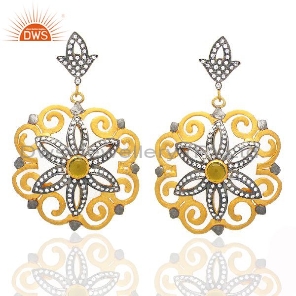 22K Yellow Gold Plated Brass Cz And Hydro Green Designer Dangle Earrings