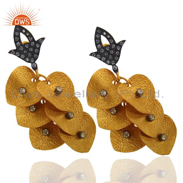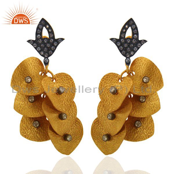 22K Yellow Gold Plated Brass Cz Textured Petals Fashion Chandelier Earrings