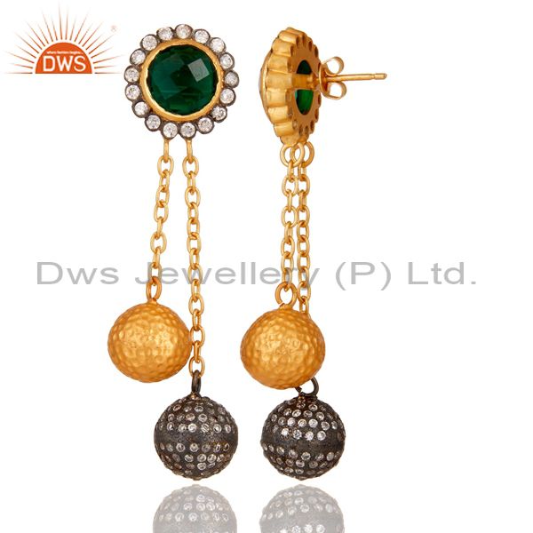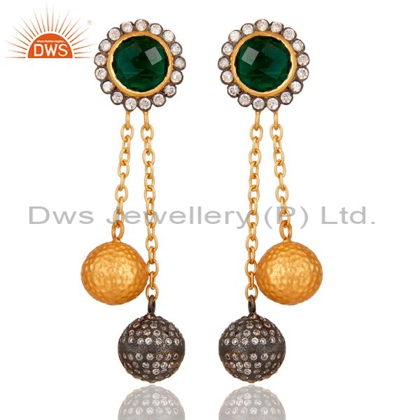 22K Yellow Gold Plated Brass Green Hydro Chain Dangle Earrings With Cz