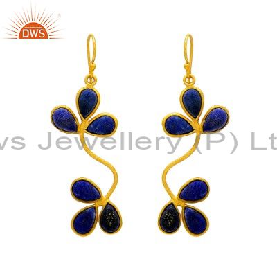22K Yellow Gold Plated Brass Lapis Lazuli Gemstone Dangle Earrings