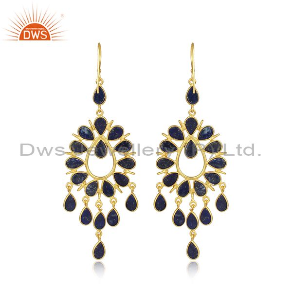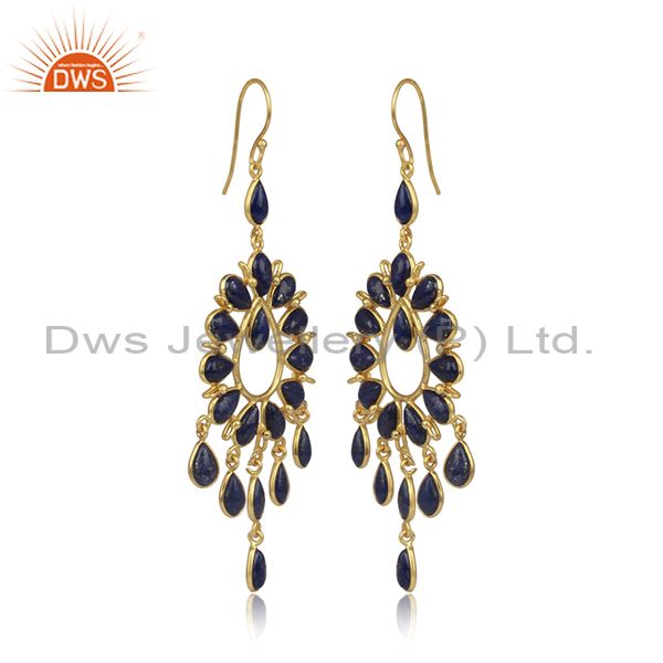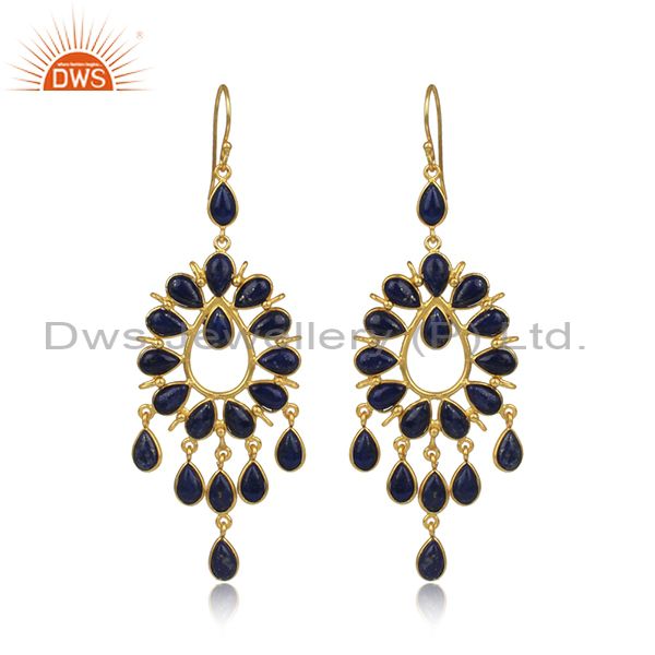 22K Yellow Gold Plated Brass Lapis Lazuli Gemstone Fashion Chandelier Earrings
