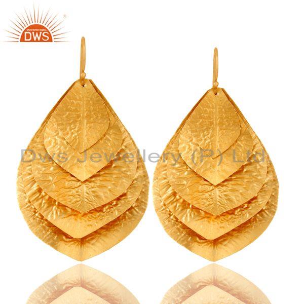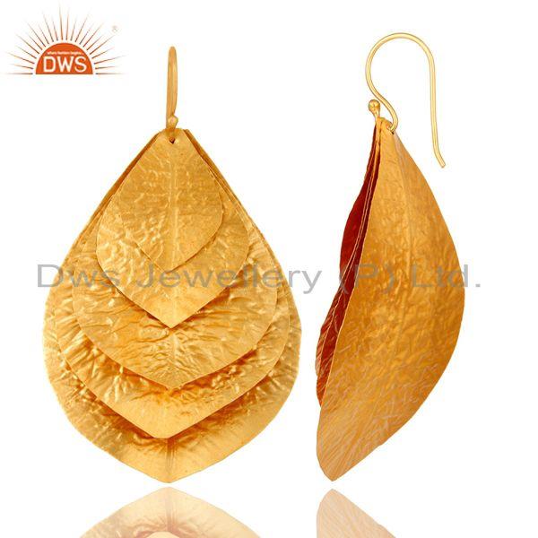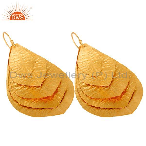 22K Yellow Gold Plated Brass Three Petals Dangle Earrings