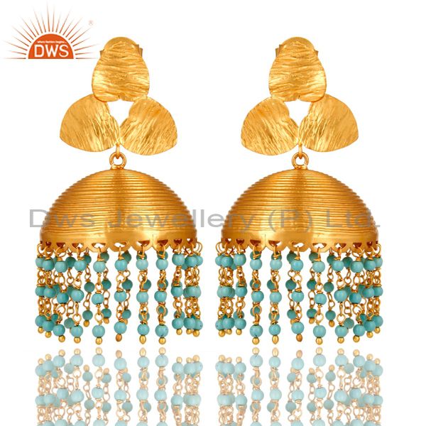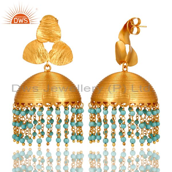 22K Yellow Gold Plated Brass Turquoise South Indian Fashion Jhumka Earrings