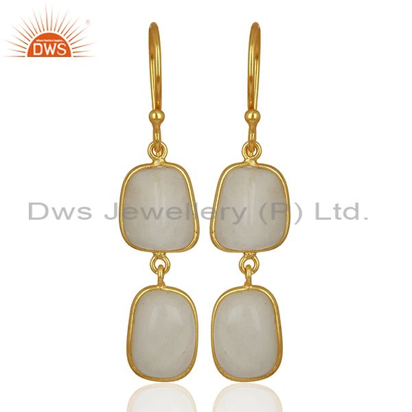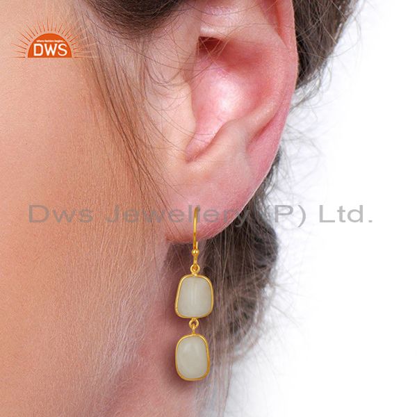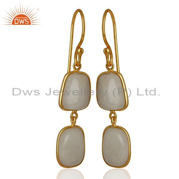 22K Yellow Gold Plated Brass White Agate Bezel Set Gemstone Dangle Earrings
