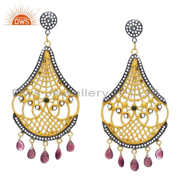 22K Yellow Gold Plated Cz And Pink Tourmaline Designer Chandelier Earrings