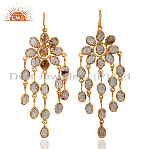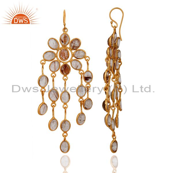 22K Yellow Gold Plated Handmade Natural Rutilated Quartz Chandelier Earrings