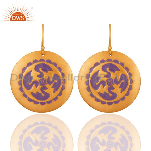 22K Yellow Gold Plated Over Brass Handcrafted Hook Dangle Earrings