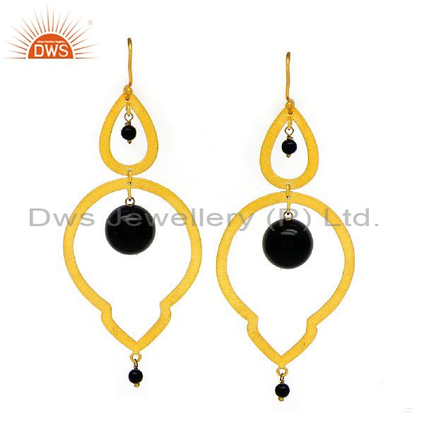 22K Yellow Gold Plated Sterling Silver Black Onyx Gemstone Teardrop Earrings