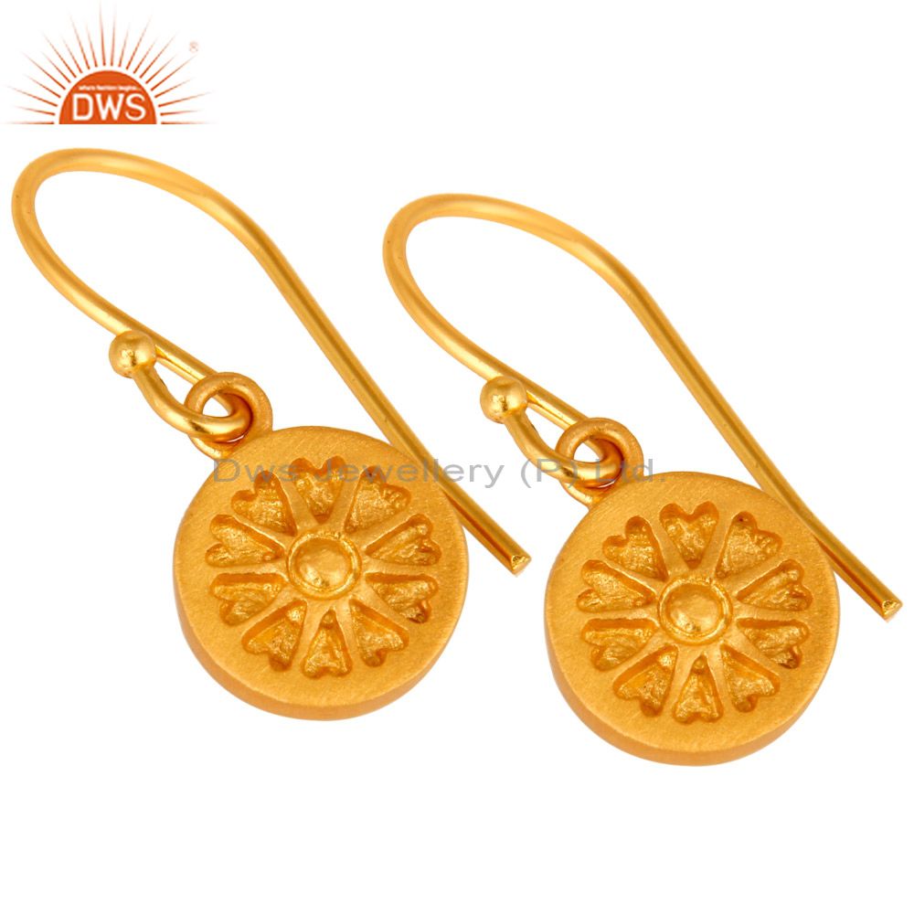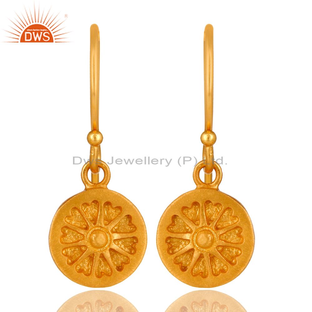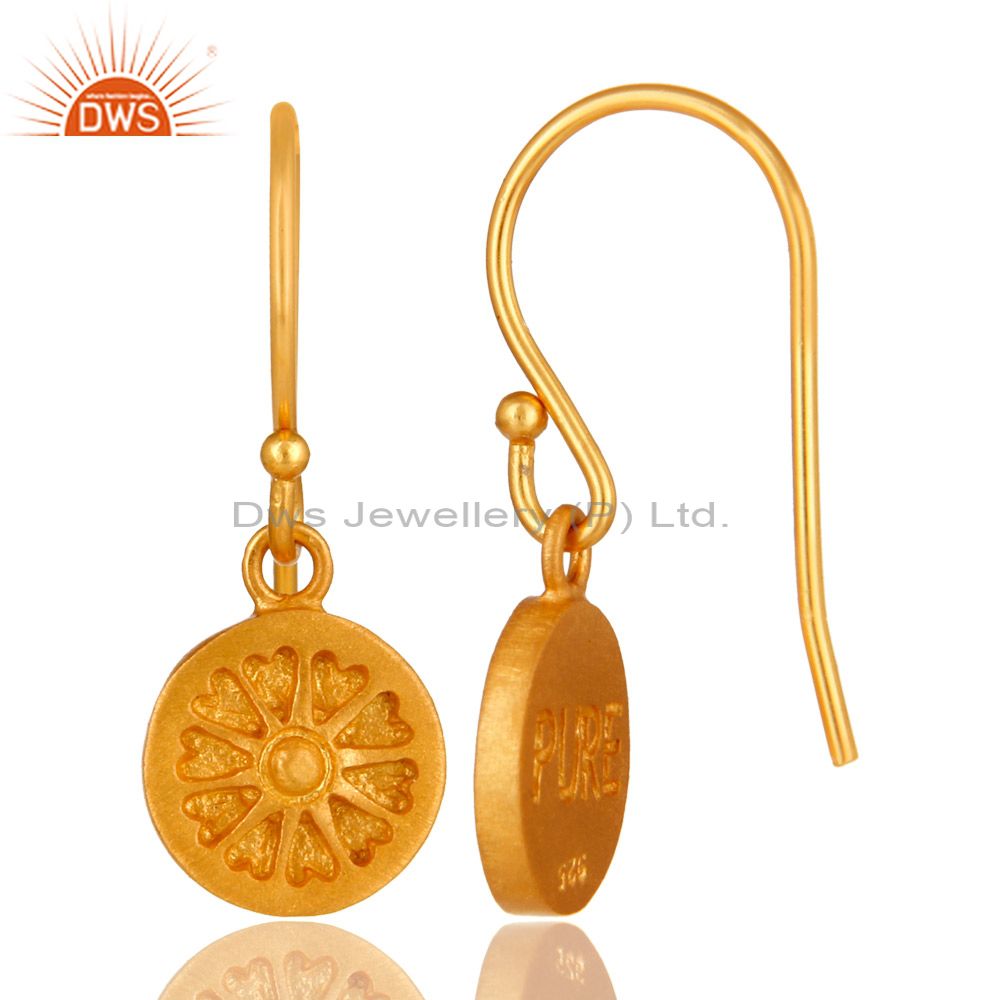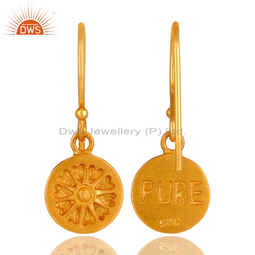 22K Yellow Gold Plated Sterling Silver Circle Dangle Earrings For Womens