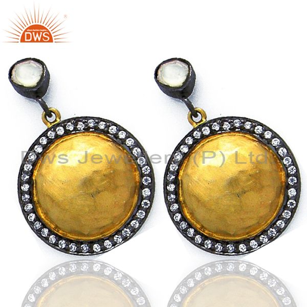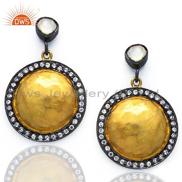 22K Yellow Gold Plated Sterling Silver Crystal Cz Polki Disc Dangle Earrings