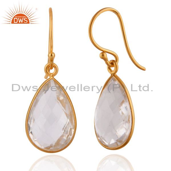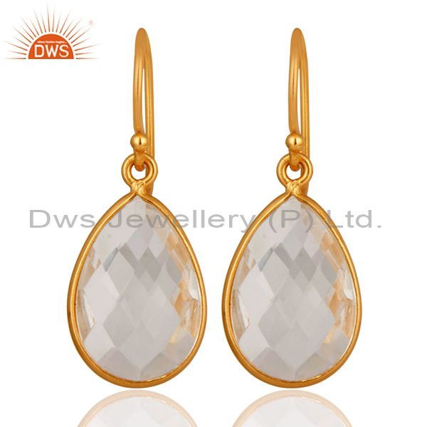 22K Yellow Gold Plated Sterling Silver Crystal Quartz Bezel Set Drop Earrings