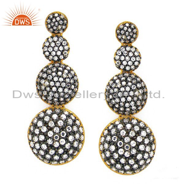 22K Yellow Gold Plated Sterling Silver Cubic Zirconia Fashion Dangle Earrings