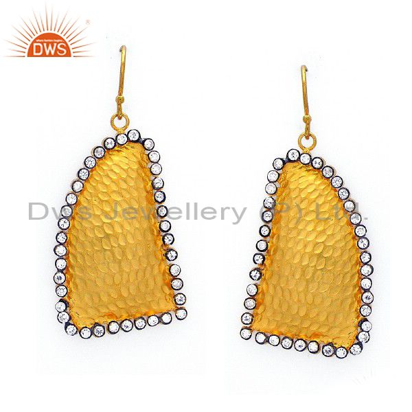 22K Yellow Gold Plated Sterling Silver Cubic Zirconia Hammered Dangle Earrings