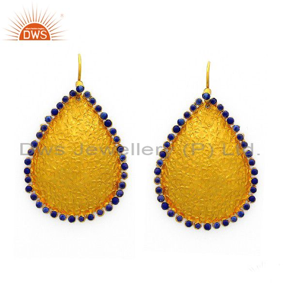 22K Yellow Gold Plated Sterling Silver Cubic Zirconia Hammered Teardrop Earrings