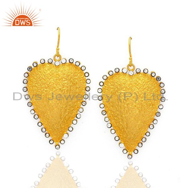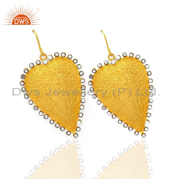 22K Yellow Gold Plated Sterling Silver Cubic Zirconia Heart Designer Earrings