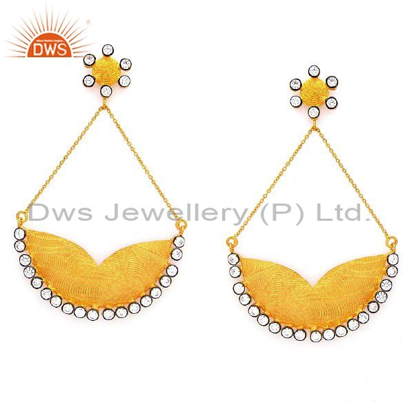 22K Yellow Gold Plated Sterling Silver Cubic Zirconia Ladies Fashion Earrings