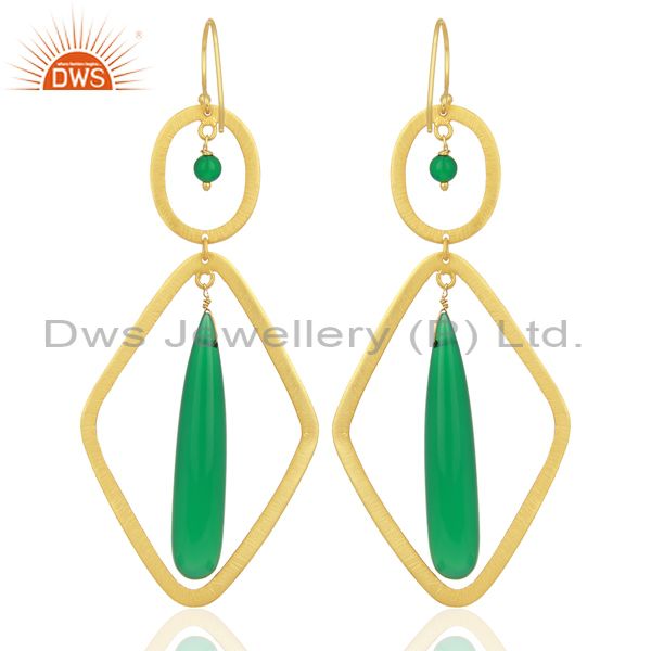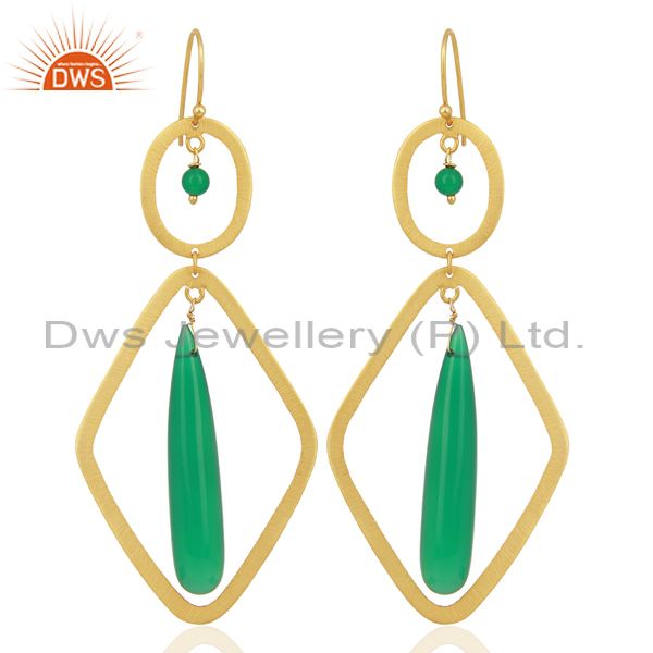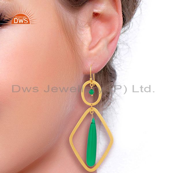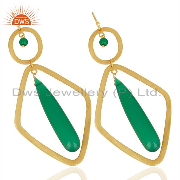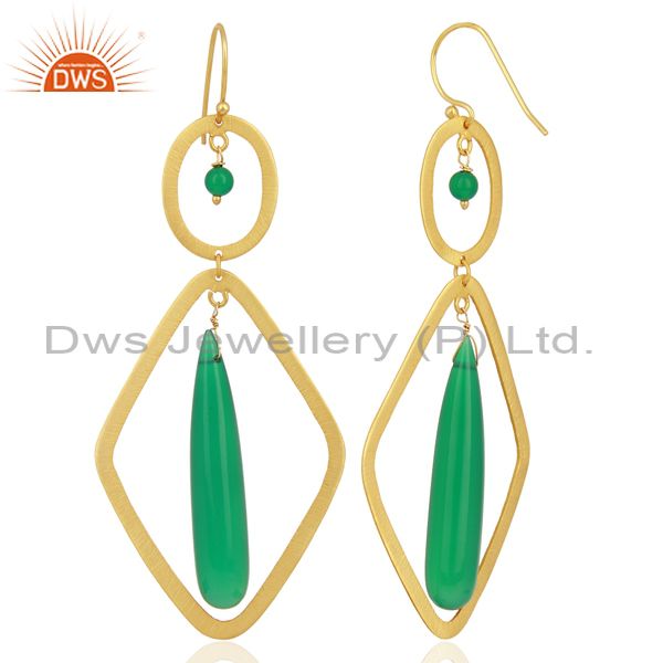22K Yellow Gold Plated Sterling Silver Green Onyx Gemstone Teardrop Earrings