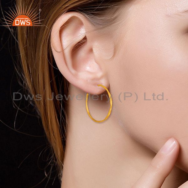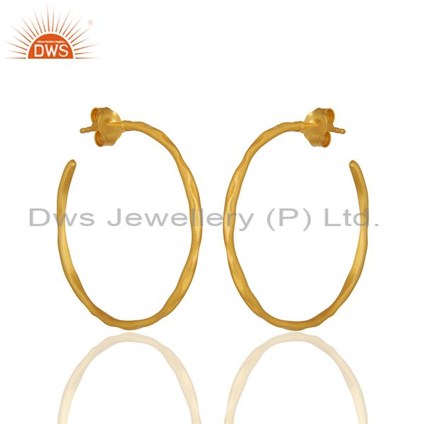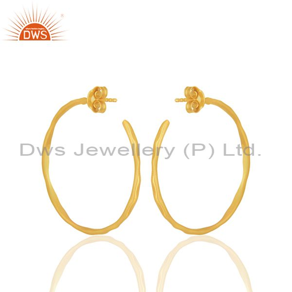 22K Yellow Gold Plated Sterling Silver Hammered Circle Hoop Earrings