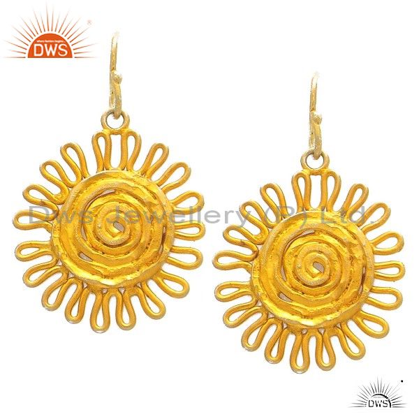 22K Yellow Gold Plated Sterling Silver Hammered Designer Dangle Earrings