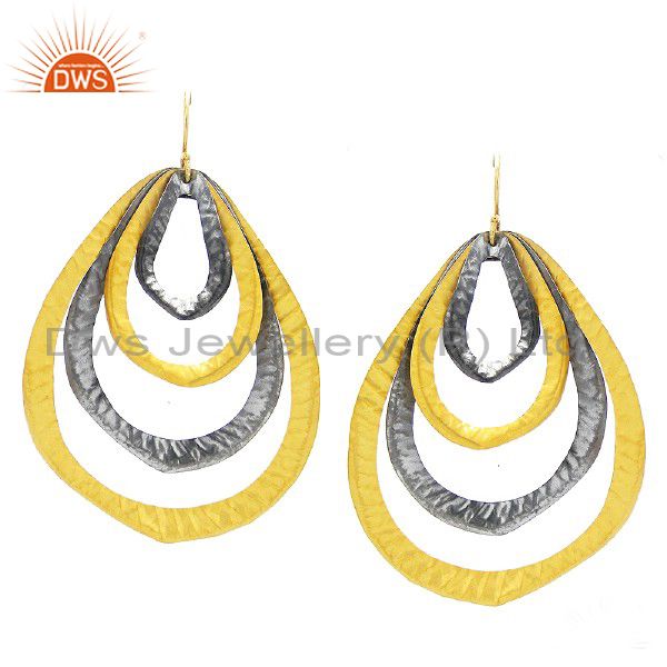 22K Yellow Gold Plated Sterling Silver Hammered Multi Circle Dangle Earrings
